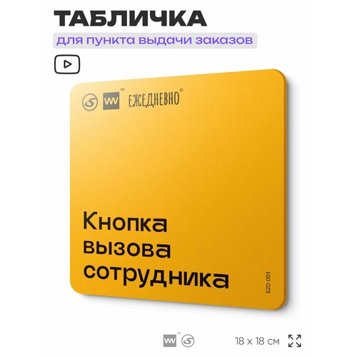 Табличка для ПВЗ "Кнопка вызова сотрудника" для оформления пункта выдачи, 18х18 см, пластиковая, SilverPlane x Айдентика Технолоджи