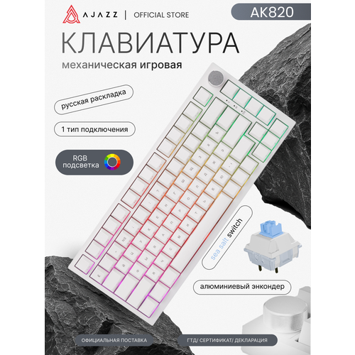 Клавиатура механическая Ajazz AK820, проводная, белая, RGB подсветка, Sea Salt Switch