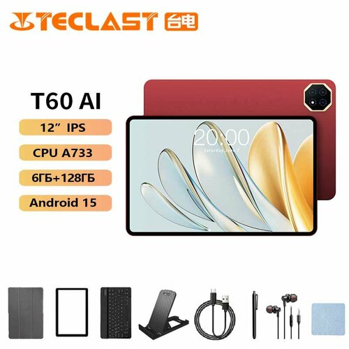 Teclast Tablet T60 AI+CASE, 12", 2K, Android 15, CPU A733,8000 мАч, 6 ГБ+128 ГБ, двухдиапазонный WiFi6