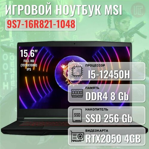 Ноутбук игровой MSI GF63 Thin 12UCX-1048XRU i5-12450H/8GB/256GB SSD/15.6" FHD IPS 144Hz/RTX2050 4GB/NoOS Black (9S7-16R821-1048)
