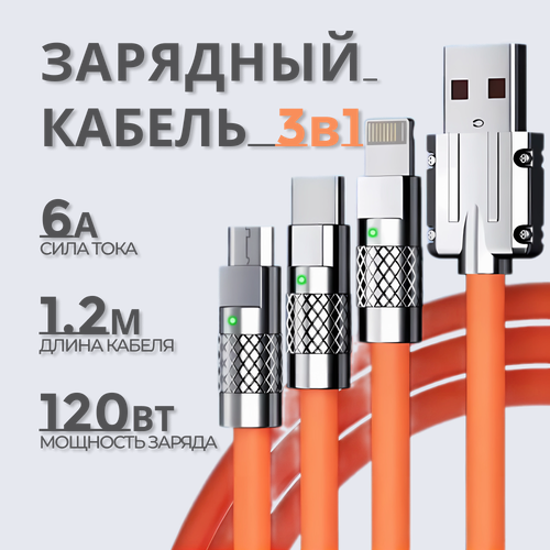Универсальный кабель 3 в 1 для быстрой зарядки iPhone/iPad/Android, 6A