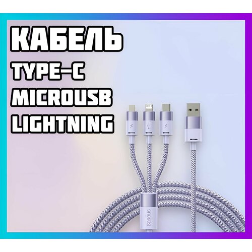 Кабель зарядка USB Type-C MicroUSB передача данных 3в1