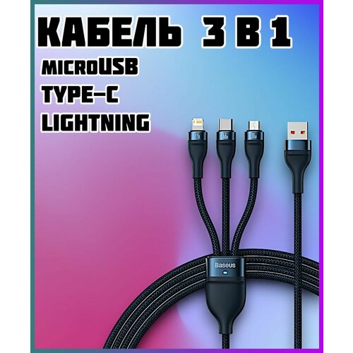 Зарядный кабель 3в1 MicroUSB, Type-C, Lightning