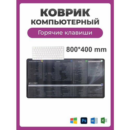 Коврик для мышки и клавиатуры большой Горячие клавиши, компьютерный коврик игровой 400*800, антискользящий, геймерский