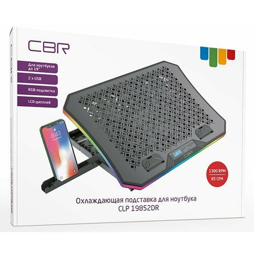 Cbr Аксессуар к ноутбуку CBR CLP 17202, Подставка для ноутбука до 17", 390x270x25 мм, с охлаждением, 2xUSB, вентиляторы 2х150 мм, 20 CFM, LED-подсветка, материал металл/пластик