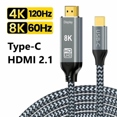 Кабель USB 3.1 Type-C (Thunderbolt 3) на HDMI 2.1 / 8К 60Гц, 4К 120Гц, HDR / 2 метра