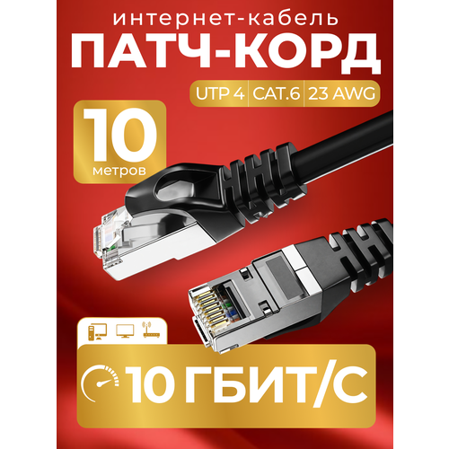 Патч корд 10 м кат 6, интернет кабель RJ45 Cat.6 UTP, сетевой Ethernet Lan для соединения интернета роутера, витая пара