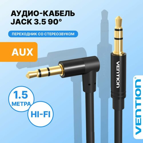 Кабель MINI Jack-Jack 3.35 угловой 1.5 м стерео переходник мини джек для подключения кабель в машину, для наушников Vention провод акустический арт. BAKBG-T
