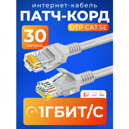 Патч корд 30 м кат 5е, интернет кабель RJ45 Cat.5e UTP, сетевой Ethernet Lan для соединения интернета роутера