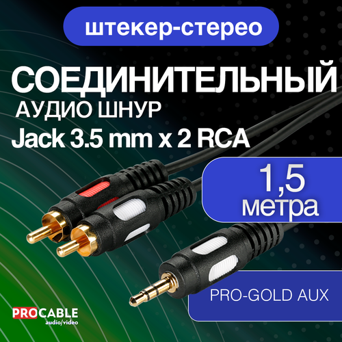 Аудио шнур Jack 3.5mm - 2 RCA PRO-GOLD 1.5 метра