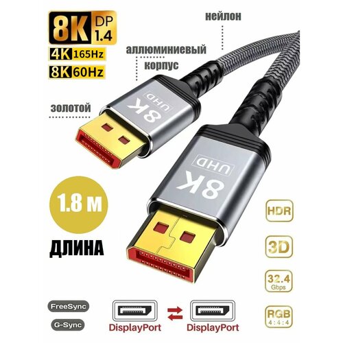 Кабель DP DisplayPort - DP DisplayPort v1.4 8K 60 Гц 1.8 м нейлон