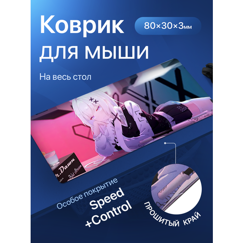 Игровой коврик для мыши большой, фиолетовый, аниме, игровой. Размер 80х30x0.3