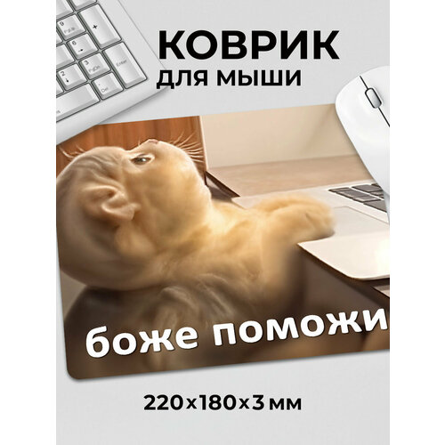 Коврик для мышки с приколом мем кот котик Боже поможи