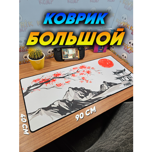 Большой игровой коврик для мышки с принтом, 90х40 см, снежная япония. Компьютерный ковер под клавиатуру и мышь на весь стол