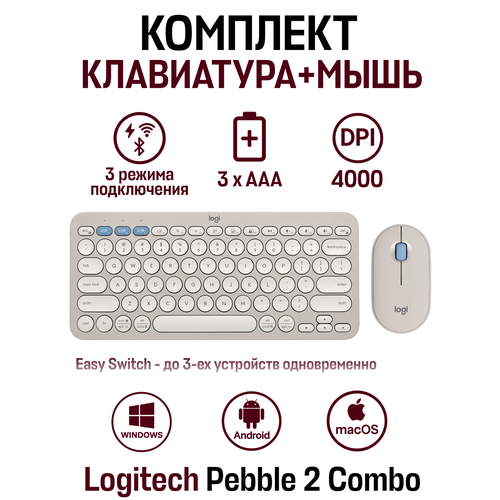 Комплект: клавиатура+мышь Logitech Pebble 2 Combo серый, английский