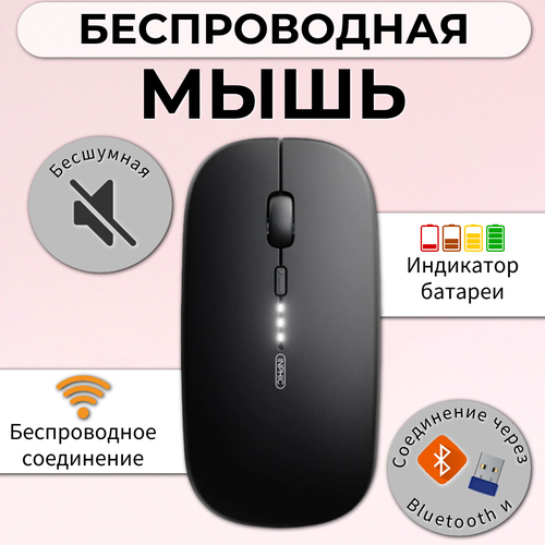 Беспроводная мышка компьютерная черная, для ноутбука, для игровой приставки
