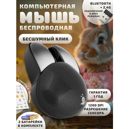 Компьютерная мышь беспроводная Кролик M6DM 2,4G Bluetooth USB серо-черная