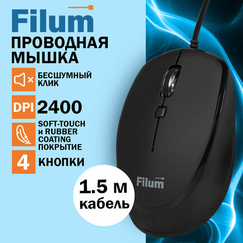Мышь проводная Filum FL-M10-BK оптическая USB 4 кнопки, чёрный