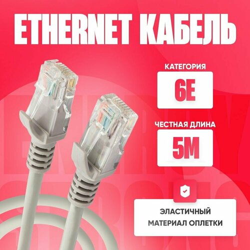 Kабель для интернета патч корд UTP 5М 6E Ethernet кабель RJ45 LAN круглый