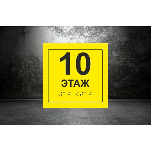 Тактильная табличка со шрифтом Брайля " Номер этажа 10" 150х150мм для инвалидов "Доступная среда" по ГОСТ 52131-2019 ПВХ 3мм