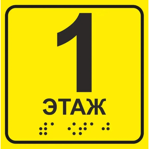Тактильная табличка со шрифтом Брайля " Номер этажа 1" 150х150мм для инвалидов "Доступная среда" по ГОСТ 52131-2019 ) ПВХ 3мм