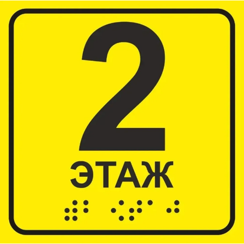 Тактильная табличка со шрифтом Брайля " Номер этажа 2" 150х150мм для инвалидов "Доступная среда" по ГОСТ 52131-2019 ПВХ 3мм
