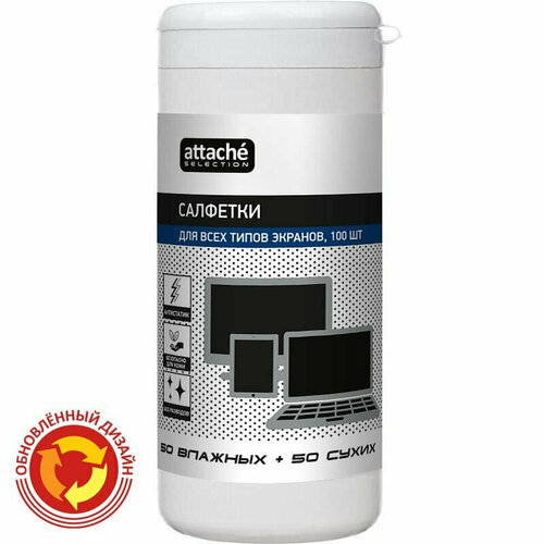 Салфетки Attache Selection д/экранов, туба, вл+сух, 50+50 шт, 130.