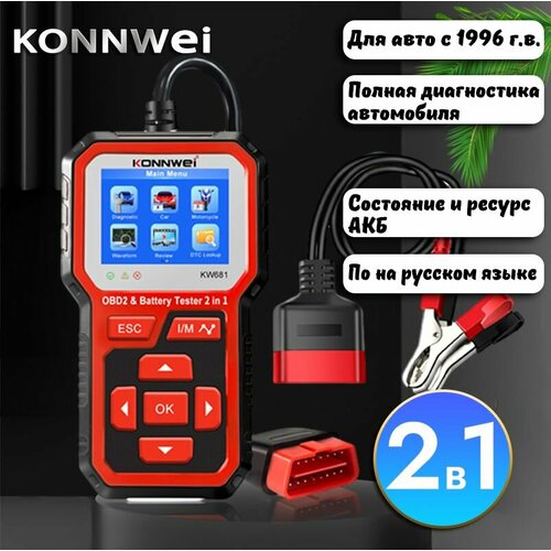 Универсальный автосканер для диагностики состояния систем авто Konnwei KW680 русская версия 2023 года