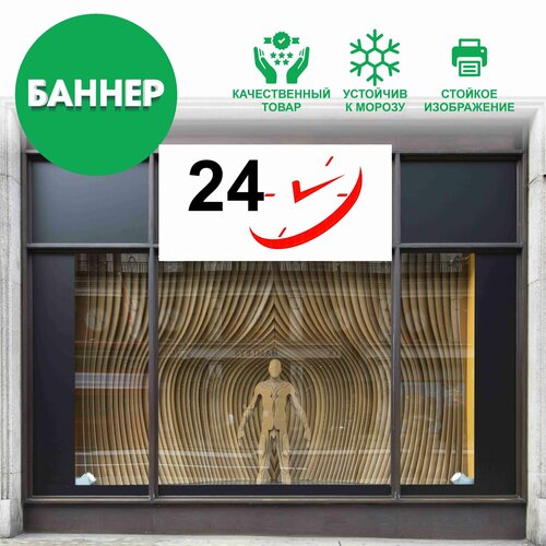 Баннер "24 часа" для торговых точек, магазинов 100х50см