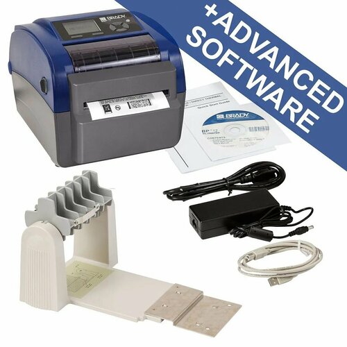 Принтер BRADY BBP12-EU-UNWINDER с базовым ПО BWS. Разрешение 300 dpi. В комп: держатель рулона, USB-кабель, шнур питания, компакт-диск с драйверами, кратким руководством по эксплуатации и пустой втулкой.