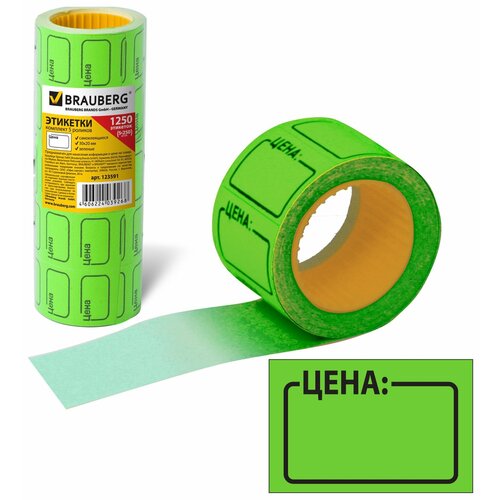 Brauberg Этикет-лента "Цена", 30х20 мм, зеленая, комплект 5 рулонов по 250 шт, Brauberg
