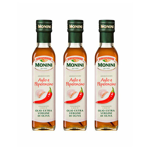 Масло оливковое Monini Экстра Вирджин Чеснок и перец чили 0.25 л. - 3 шт