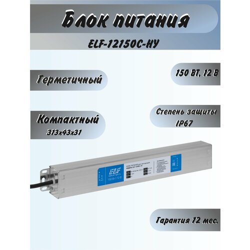 Блок питания герметичный компактный ELF, 12В, 150Вт, металл, IP67