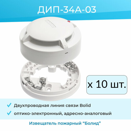 Комплект - 10шт ДИП-34А-03 (ИП 212-34А) извещатель пожарный дымовой оптико-электронный адресный Болид (Bolid)