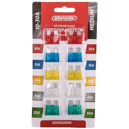 Предохранитель флажковый MEDIUM набор 10шт 7,5-30А блистер SKYWAY, S09302005