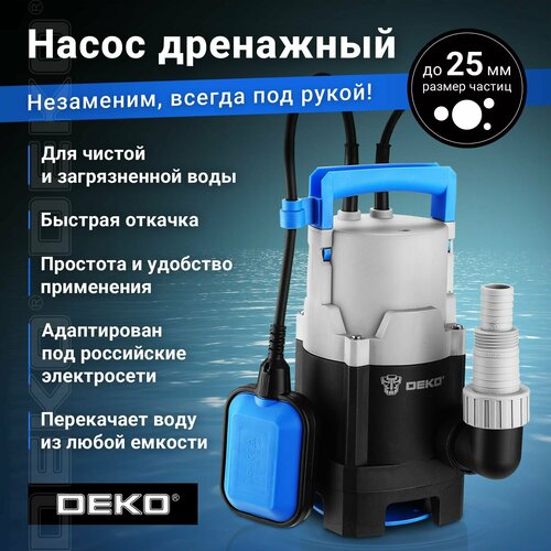 Насос дренажный DEKO DWP-400P (грязевая, поплавок, 220В, 400Вт, пластик)