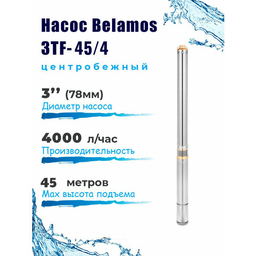 Насос скважинный центробежный Belamos 3TF-45/4_1.5, 67л/мин, Н-45 м, Ø-3", каб.1,5 м