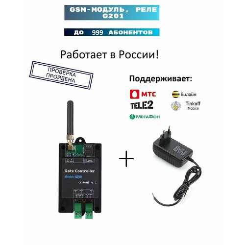 GSM модуль G201 для ворот и шлагбаумов, Gsm реле на 999 абонентов + блок управления в розетку 12в 1а