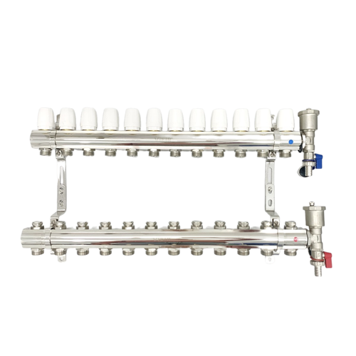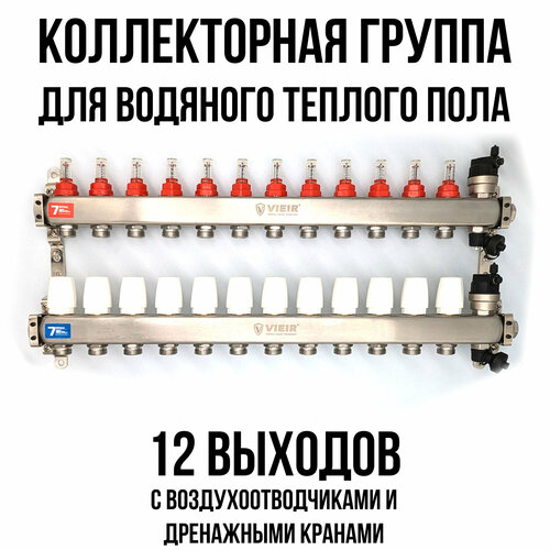 Коллектор для теплого пола на 12 выходов с расходомерами, автоматическими воздухоотводчиками и дренажными кранами VIEIR