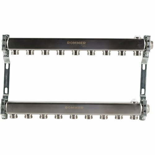 Коллектор ROMMER без расходомеров 9 выходов в сборе из нержавеющей стали