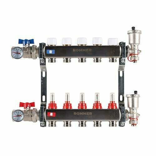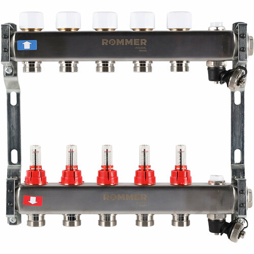 Коллектор ROMMER с расходомерами 4 выхода в сборе из нержавеющей стали