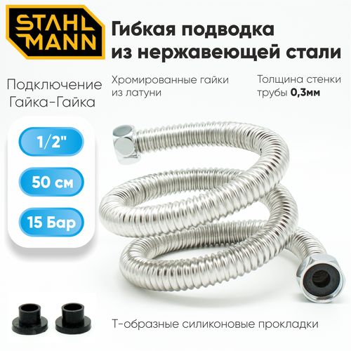 Гибкая подводка для воды 1/2" 50см из нержавеющей стали