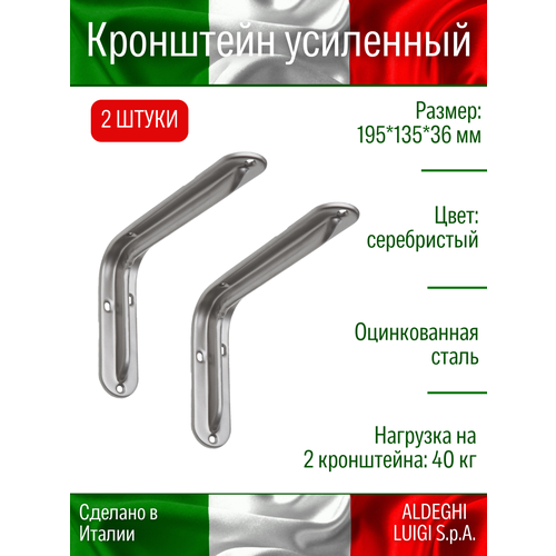 Кронштейн ALDEGHI LUIGI S.p.A. усиленный 195х135х36 мм, оцинкованный, цвет:, 40 кг, 2 шт.