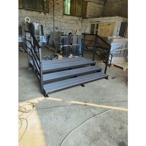 Цены на Лестница 3 металлические ступени, ограждение с одной стороны. Ширина 80 см. серый, черный в г. Новосибирск