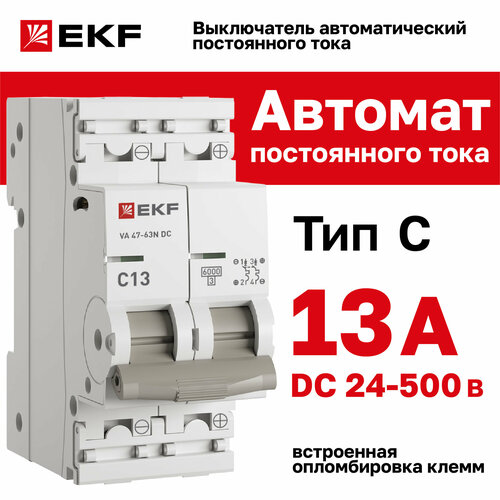 Автоматический выключатель 2P 13А (C) 6кА ВА 47-63 DC EKF PROxima