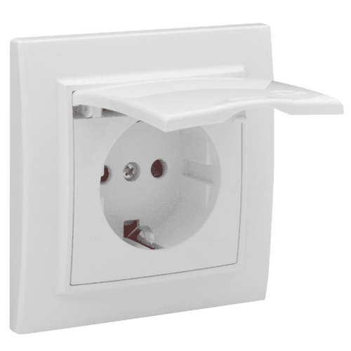 (8 шт.) EKF Минск Белый Розетка 1-местная с заземляющими контактами с крышкой с защитными шторками скрытая установка 16А ERR16-029-100