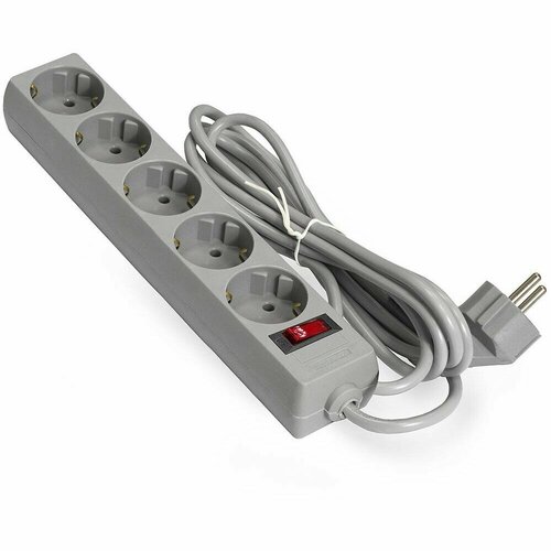 Удлинитель ExeGate ECE-5-5G 5 евророзетки с заземлением, 5м, серый 285826