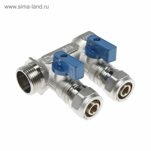Коллектор, 3/4"х16 мм, 2 выхода, с шаровыми кранами, для м/п труб, никелированный