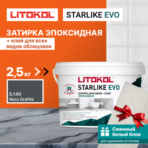 Затирка LITOKOL Starlike Evo S.140 Nero Grafite, 2,5 кг + 1 белый сменный блок