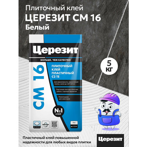 Клей для любых видов плитки и крупноформатного керамогранита Церезит CM16 белый (5кг)